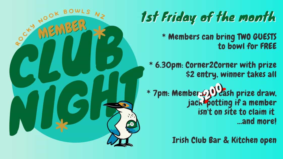 upcoming events and tournaments MARCH 6th: Member Club Night 14th: Champ Pairs 15th: Len Davidson Memorial Open Pairs 17th: St Patrick's Day GREENS CLOSED 22nd: Champ Triples APRIL 26th: Champ Fours MAY 2nd: Handicap Singles To register for these and other club events, and for more info, visit our website, https://www.rockynookbowls.nz/clubtournaments  |