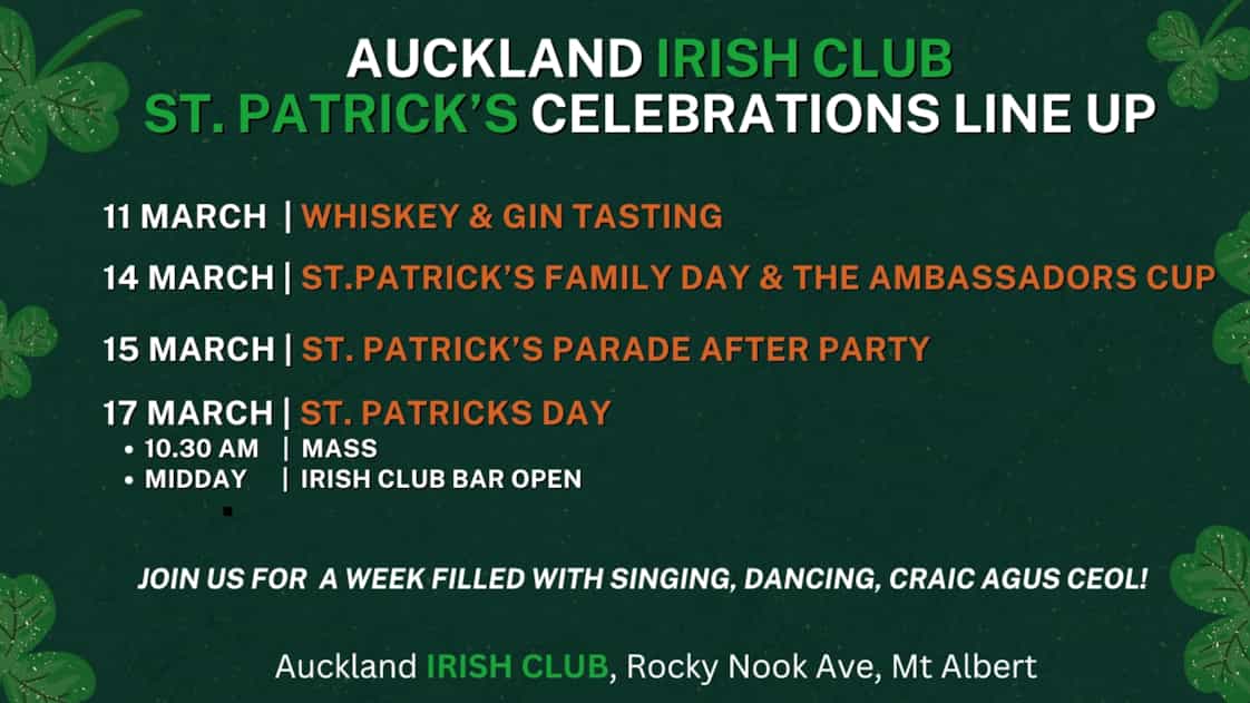 Kia ora {{First Name}}, Another chance to win in our Club Night member cash draw on Friday as well as plenty of dry - if cool and windy right now!- weather to enjoy the greens under. Currently the AIC bar is open Thursday and Friday evenings, as well as Sundays from 2.30pm, so members can take advantage of a roll-up with a drink or meal. The Irish Club has a full week of events leading into St Patrick's Day on the 17th- when the greens will be closed for the day- including a Family Day on the 14th followed by Parade Day on the 15th- the same day as we host our big open tournament, The Len Davidson Memorial Pairs.  |